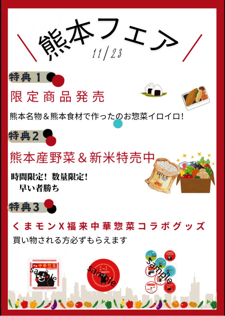2025年11月23日(土) 福来中華惣菜 アル・プラザ鶴見店で熊本フェア開催いたします。